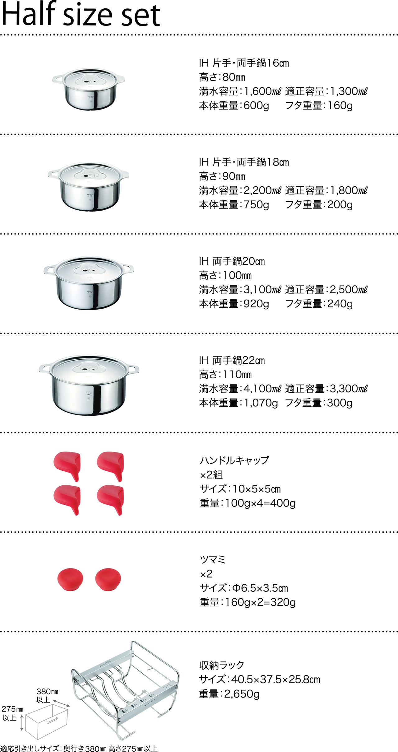 普段よく使うサイズの鍋をコンパクトにまとめた、お求めやすいハーフセットをご用意いたしました!
